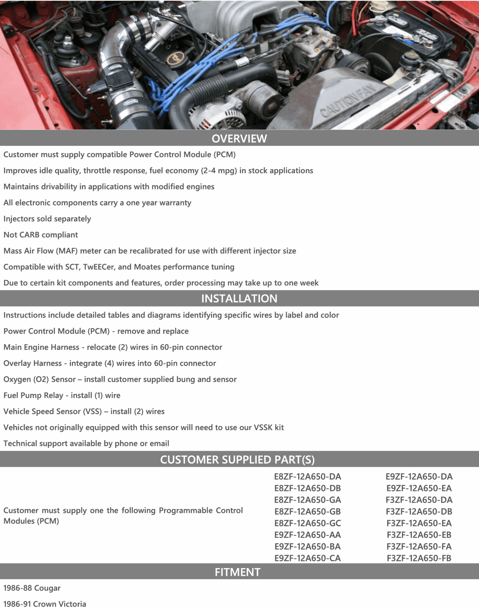 1985-97 Ford F-Series 5.0/5.8L (non-E4OD) MAF Conversion Kit