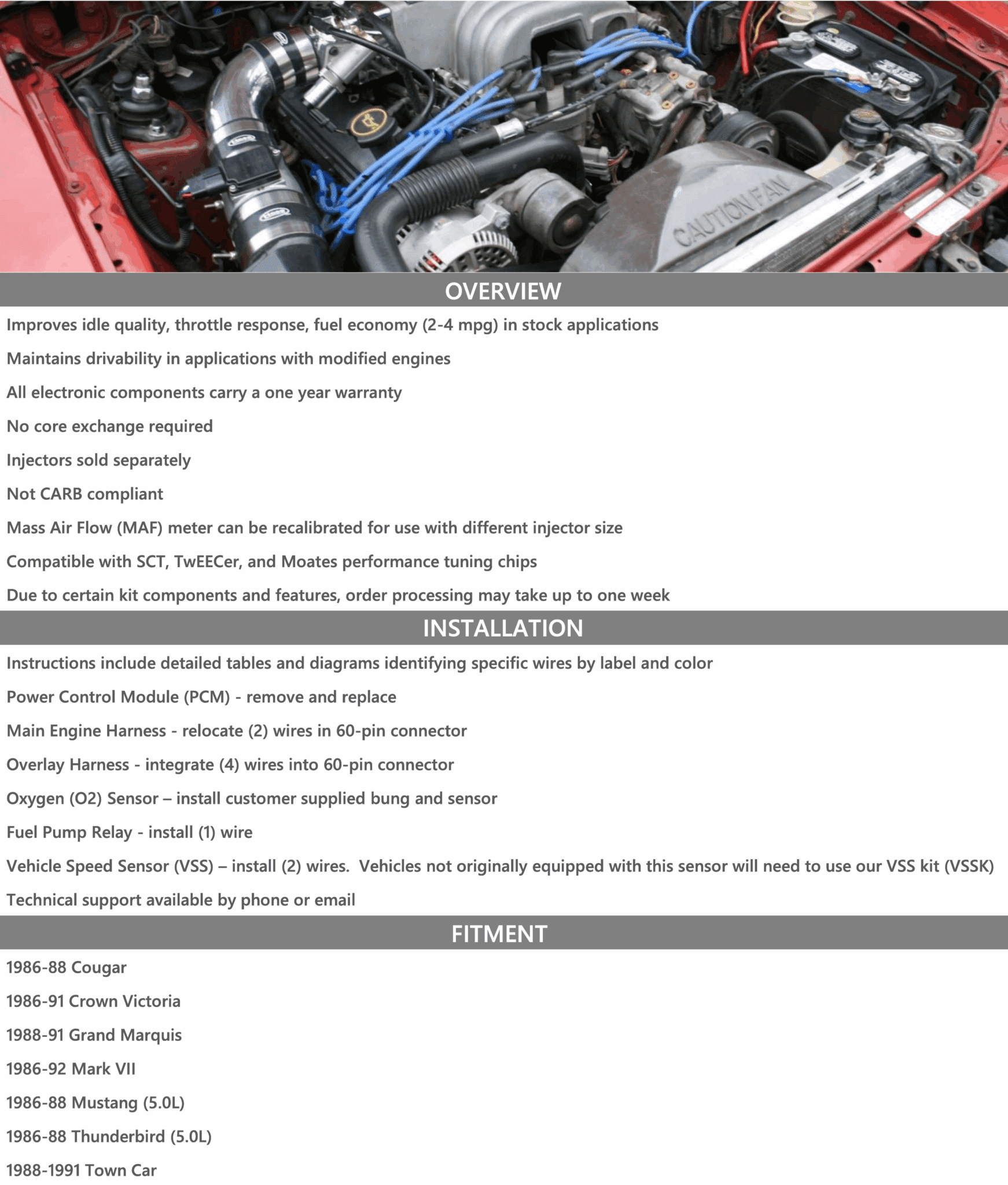 1986-88 Ford Mustang 5.0L MAF Conversion Kit