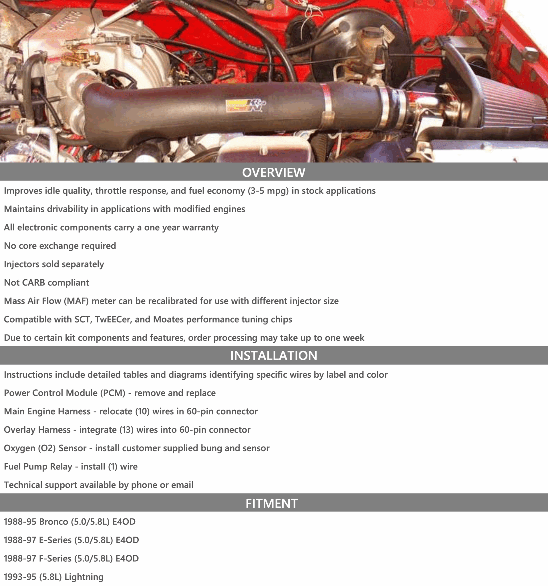 1988-97 Ford F-Series 5.0/5.8L (E4OD) MAF Conversion Kit