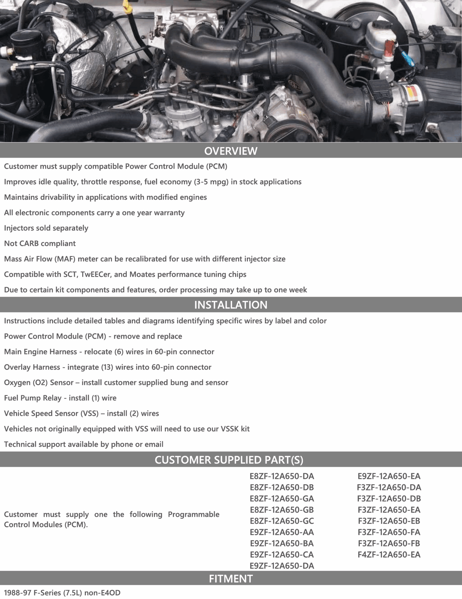 1988-97 Ford F-Series 5.0/5.8L (E4OD) MAF Conversion Kit