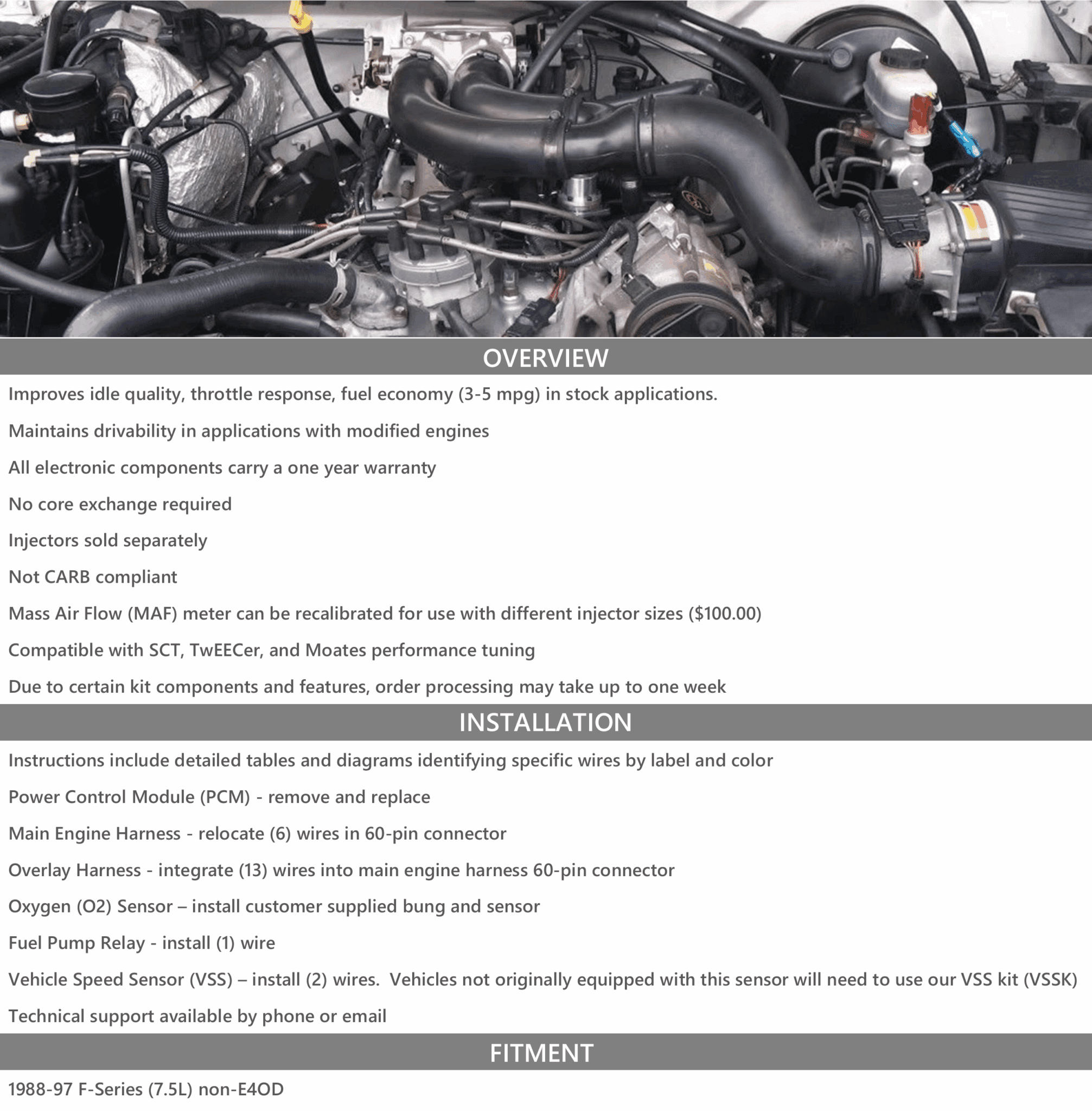 1988-97 Ford F-Series 7.5L (non-E4OD) MAF Conversion Kit